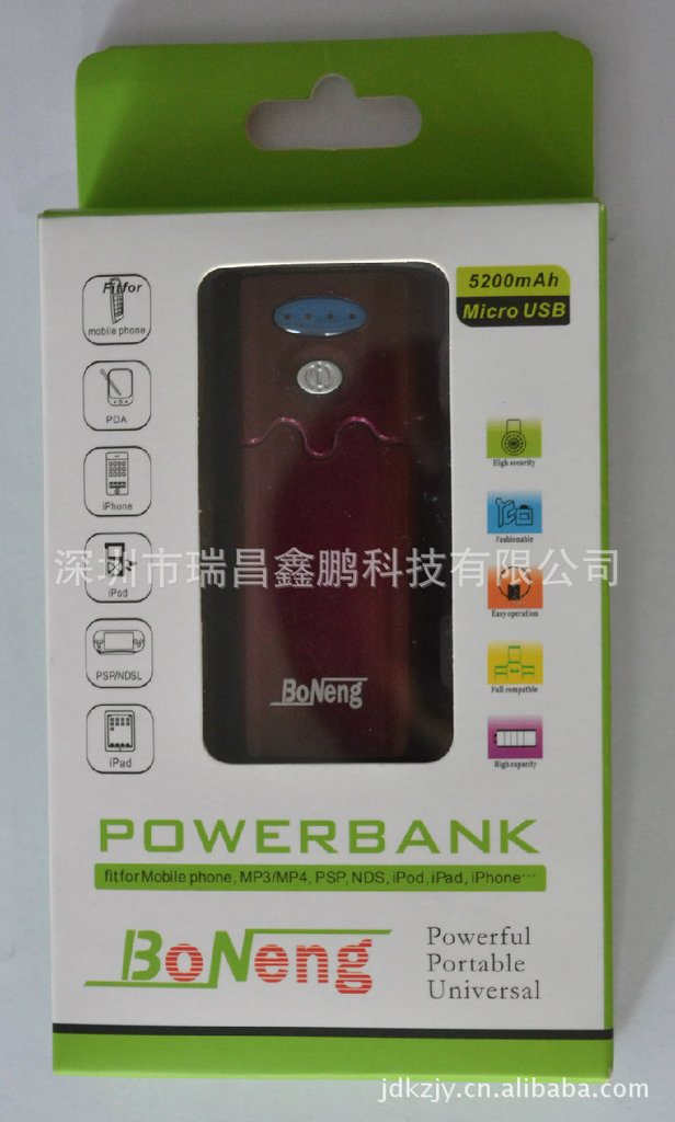 控制及显示部分采用智能MCU管理,实现一个按键控制LED照明、电量显示、输出开启等功能。配合多功能转接头,可以为常用的数码产品充电,如:iPhone,各品牌手机、平板电脑、psp、MP3/MP4、掌上电脑PDA及数码学习机等多种产品,还可以充HTC,MOTO,三星,索爱等绝大部分智能手机,只要您的手机能用电脑充电,就能用此产品电供电和充电;