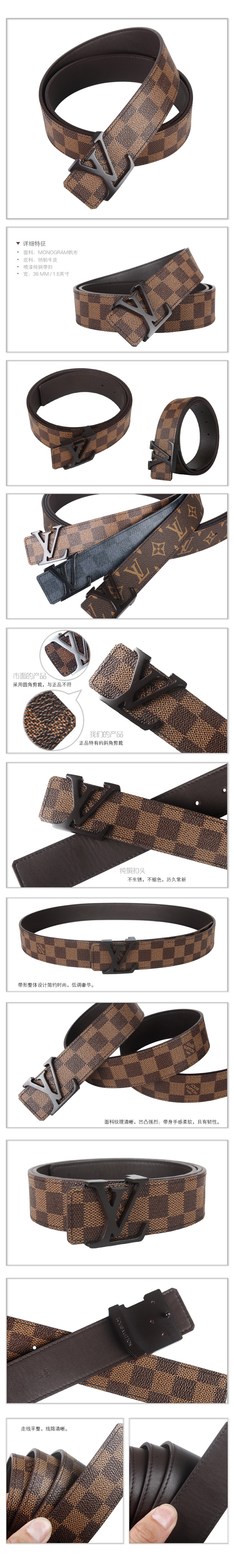 男士皮带 lv经典英伦韩版棋盘腰带 lv商务休闲皮带编辑