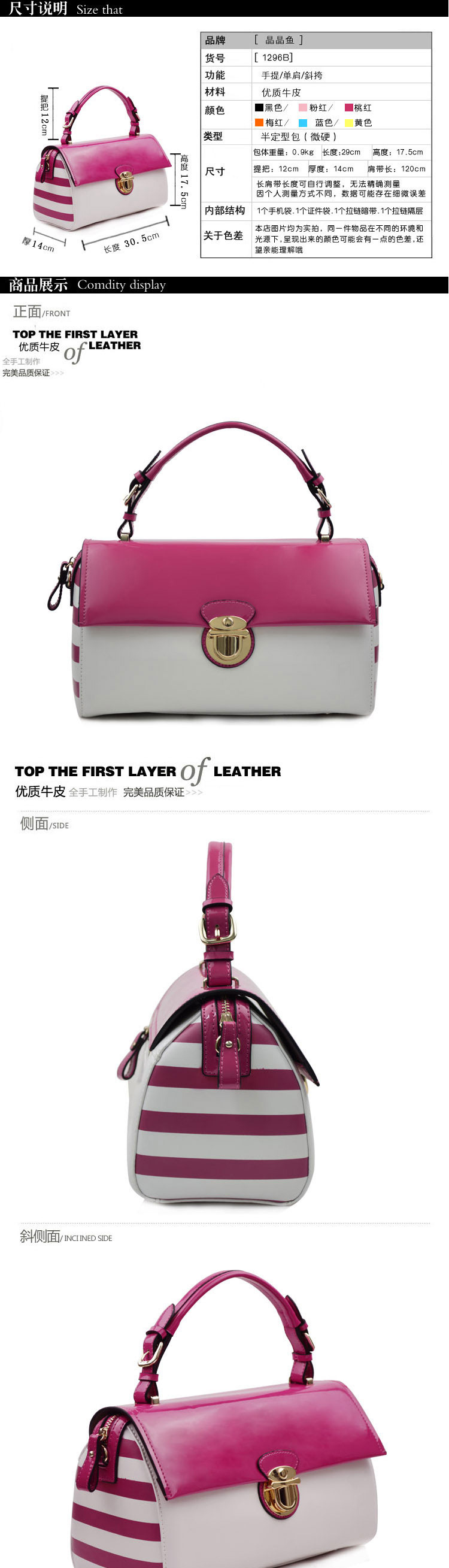 晶晶鱼1538欧美职业风时尚真皮女包新款条纹手提斜挎漆牛皮包包批