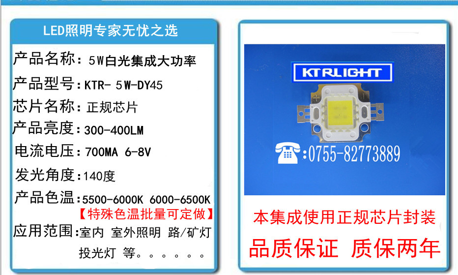 5W白光led灯珠