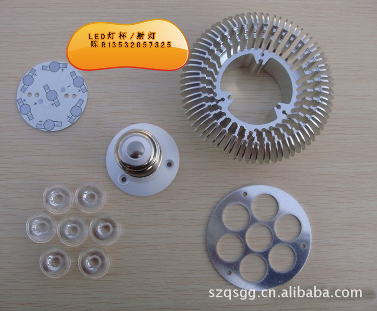 LED大功率灯杯铝合金灯体:防撞、散热性好;2.电镀,外表光滑,反光率高。灯盖部分: