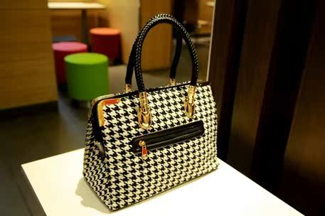 包邮2013新款欧美千鸟格包包优雅气质百搭通勤包手提包单肩包