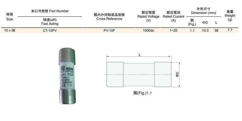 标称尺寸: 10 x 38 mm,13/32 x 1-1/2 inch,圆管型快速熔断器。