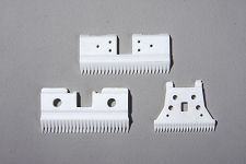 具有重量轻、耐磨损、摩擦小、抗氧化、寿命长等优点最先进的PIM成形技术生产的产品。是美发推剪、美容鼻毛剪、体毛剪、修眉刀、胡须刀、修羊毛刀、宠物剪毛刀的重要部件。