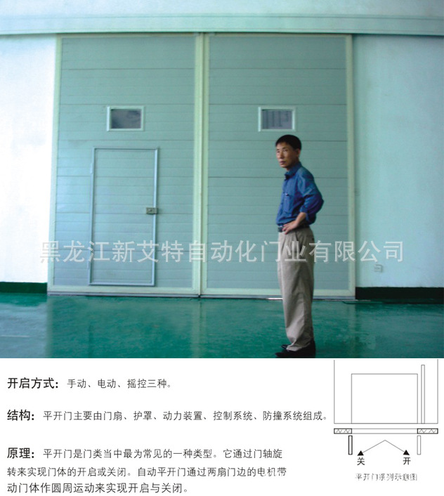 产品类型多样,适合于各种不同的安装环境。无论室内室外,平开门都能广泛用于各种生产车间,仓库,废物处理中心等诸多恶劣环境场所。具有保温、隔热、抗风的性能,均有电动和手动两种形式。