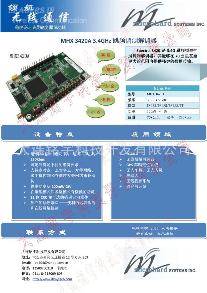 Spectra 3420是3.4G跳频频谱扩展调制解调器,其能够在70公里甚至更大的范围内提供强健的数据传输。