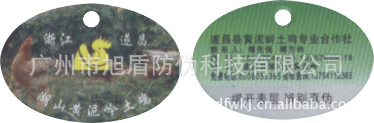 特点:材料防水而且采用防水油墨进行反正面四色印刷。标识可以打孔直接连接到产品上,防伪性能极高。
