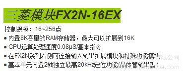 三菱FX2N-16EX是三菱电机公司推出的一款FX2n系列PLC模拟量输入模块,通过扩展电缆与PLC主机相连。它可以为工厂自动化应用提供最大的灵活性和控制能力。更高的性价比 高速化、高精度的控制(基本指令0.08μs/步) 高性能的内置功能(高速计数器、高速输入/输出等) 扩大控制点数,最大支持256点I/O