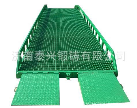 移动式登车桥台面铺防滑钢板拉网,下衬δ4钢板,既增加防滑功能,又增加了桥面强度,即使雨雪天气,也不影响装卸货物。