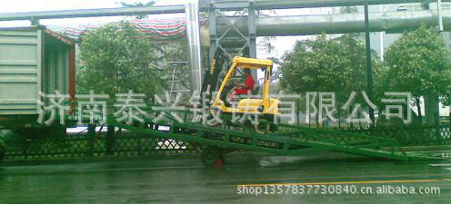 移动式登车桥广泛用于物流场所,是与车配合使用的货物装卸辅助设备,借助该设备,叉车能直接驶入汽车集装厢内部进行批量装卸作业,只需单人操作,不需动力电源,既可实现货物的安全快速装卸;又可减轻劳动强度,又能成倍提高装卸作业效率,加快物料流通速度,获取更大的经济效益。