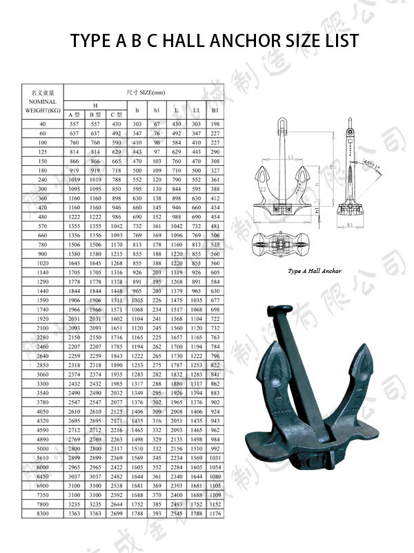 旗下铸钢锚产品有:斯贝克锚、海军锚、霍尔锚 A B C 型、日本无杆锚、AC-14大抓力锚;焊接锚产品有:波尔锚、德尔塔锚、CJ-12大抓力锚等船用锚;铸钢件产品有:DIN型导缆孔、U.S.型巴拿马导缆孔、闭式导缆孔、系泊式导缆孔、(A型)、西班牙导缆孔、巴拿马导缆孔(AC型)(BC型)、单点式导缆孔(A型)(B型)、船用小型制链器、导链轮、羊角单滚轮导缆器、系缆桩、焊接斜式导缆桩、船用铸钢件。