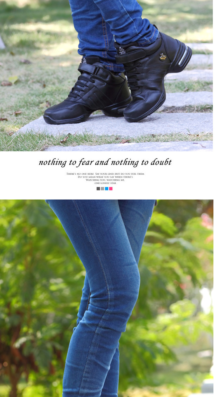 sansan女士休闲保暖健身舞蹈增高真皮跳舞鞋