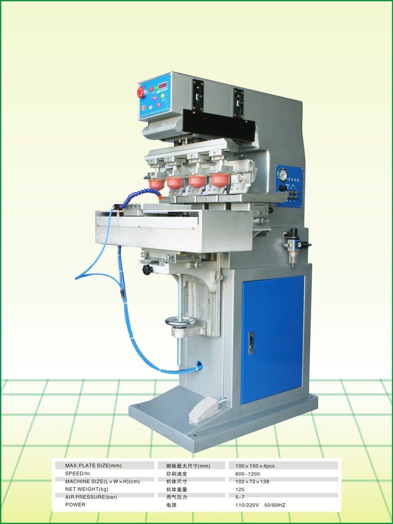 四色移印机能广泛应用于日常用品、玩具、电子、电器、塑料、皮革、汽车、礼品、仪器、广告、 金属、玻璃,其他 异形产品的移印等各种行业中。