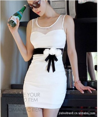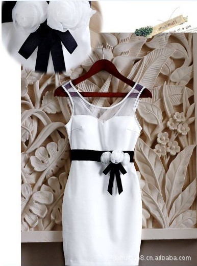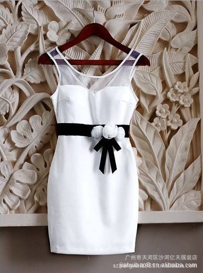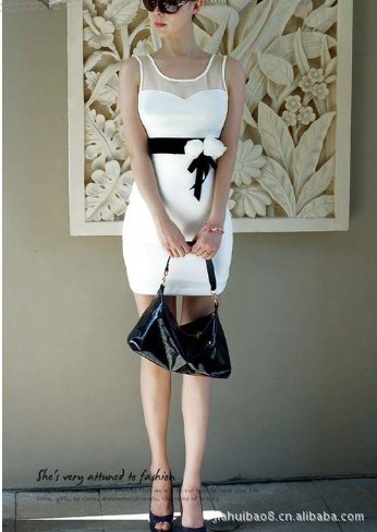 2012夏季 新款女装 性感修身纱网璀璨花漾装饰配色连衣裙 1241#