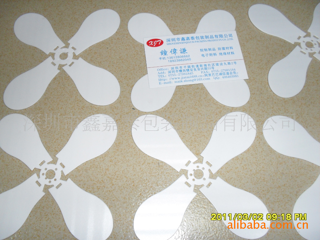 ⑥绝缘制品:背胶绒布、绒布袋、无纺布袋、绝缘纸、绝缘垫、绝缘子、绝缘片、快巴纸、青稞纸、牛皮纸、PC、PET、PVC绝缘片、夕胶片、丝印铭牌、丝印面板、丝印PVC标牌、丝印PVC商标、丝印EVA、丝印玩具等。以上产品均可按客户来样或按图纸生产,可单/双面背胶或模切冲压成型...