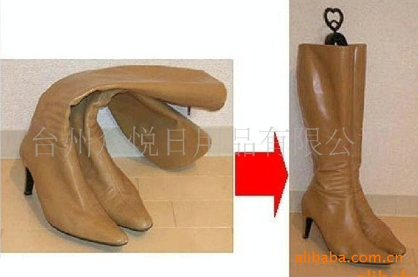产 品 描 述  现在的MM一般家里都会有2-5双靴子,平时不穿的时候那高筒就这样软踏踏地倒在地上,既容易影响靴子本身的造型,又给打扫卫生带来困扰,现在这款宝贝就是为了解决这烦恼的,适用于中/ 高筒靴,定型站直靴筒,防止靴筒倒伏打褶损伤皮革。手柄还可悬挂靴子,适合时尚鞋柜。一脚登和拉链靴筒都适用,是我们每个MM需要预备的不可缺少的实用好帮手哦~ 一双高筒靴动辄几百上千,穿在脚上好神气,脱下来却没精打采摊了一地。更让人心疼的是高档的皮面因此打褶,还会殃及鞋内衬的服帖。使用本产品后既去除臭味,防止潮湿也可以防止靴子倒下。