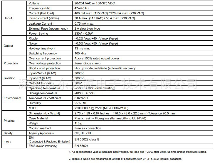 ·Universal Input Range 90-264VAC, 47-440 Hz