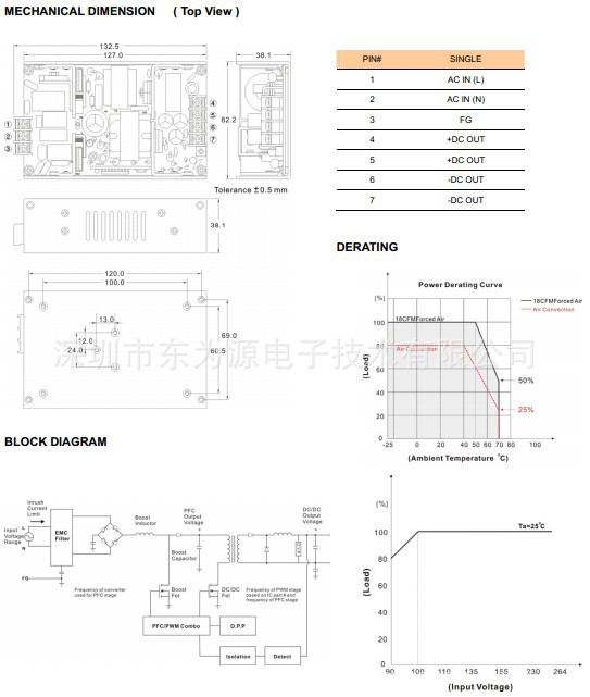 ·PFC Function·3.3 VDC to 48 VDC Single Output·3000 VAC Input to Output Isolation·125 Watt with 18CFM FAN·Ultra Compact Size: 5.0 x 3.24 x 1.5 Inches·2-Years Product Warranty