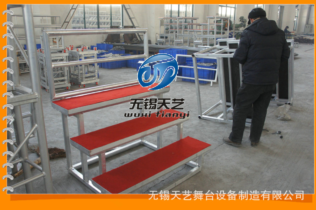 无锡天艺舞台设备制造有限公司是一家经过工商认证的有限责任公司,专业生产舞台,桁架,铝合金桁架,铝合金舞台,快装专利舞台,脚手架,灯光架,雷亚架,折叠舞台,玻璃舞台,合唱台等各种展览器材的制造研发和销售。公司位于国家级经济开发区 ,芙蓉工业园区A区蓉洋三路 32-1号,无锡东出口处8公里即可到公司,东临上海、西靠南京、北枕长江;周边与江阴、张家港、常熟等国家卫生城市紧邻,交通便捷、人杰地灵。