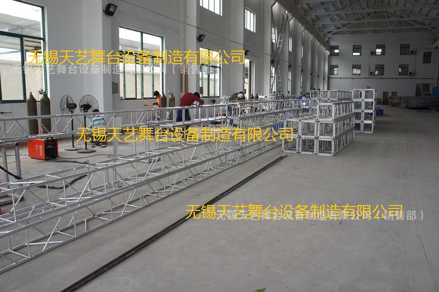 无锡天艺舞台设备制造有限公司是一家以专业生产展览钢制桁架,快装活动舞台,铝合金桁架,铝合金灯光架,雷亚架,A字架,铝合金舞台,玻璃舞台,折叠舞台,展览篷房T台为一体的综合性的大型生产企业。公司位于锡山经济开发区。公司拥有成熟的销售团队,竭诚为您提供最优质的服务,拥有最强大的技术和设备支持,全力为您打造质量最精的产品,公司秉承“质量为首,服务为先,诚信为本”的经营理念,立志在行业内创出辉煌!争创行业第一!欢迎来厂参观洽谈。我们竭诚为您提供最优良的品质和最好的服务。
