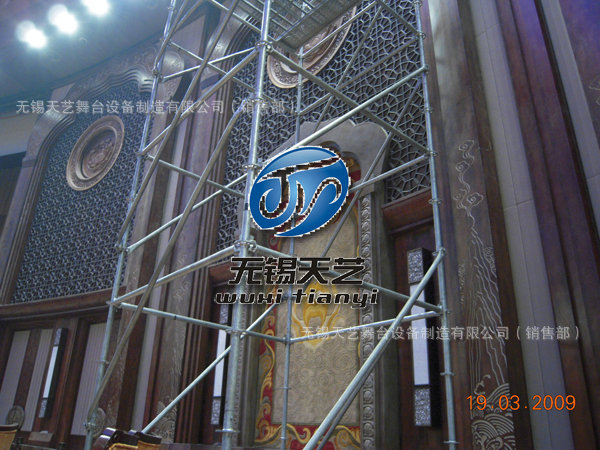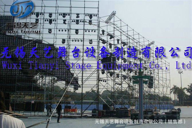 无锡天艺舞台设备制造有限公司是一家专业生产展览钢/铝桁架,钢/铝快装活动舞台,折叠舞台,玻璃舞台,展览篷房,铝合金灯光音响架,雷亚架,T台等广电传媒器材为一体的综合性的大型企业。公司位于国家级经济开发区 ,芙蓉工业园区A区蓉洋三路 32-1号,无锡东出口处8公里即可到公司,公司凭借着高质量的产品,良好的信誉,优质的服务,产品畅销全国近三十多个省、市、自治区以及远销南美、东南亚、欧美等国家。竭诚与国内外商家双赢合作,共同发展,共创辉煌。无锡天艺一直秉承“质量为首,服务为先,诚信为本”的经营理念,欢迎来公司参观洽谈。我们竭诚为您提供最优良的品质和最好的服务本公司始终坚持“以质量求生存为本”,本着“质量第一、信誉第一、竭诚服务、精益求精、不断创新”为宗旨,在国内市场奠定了良好的基础。为了更好的推行ISO质量管理体系,规范生产流程,严控把关产品质量,公司配备目前最先进的组装焊接与机械加工设备,流水线式的生产,不断提高生产技术和质量,确保以最优质的产品来满足客户的需求。