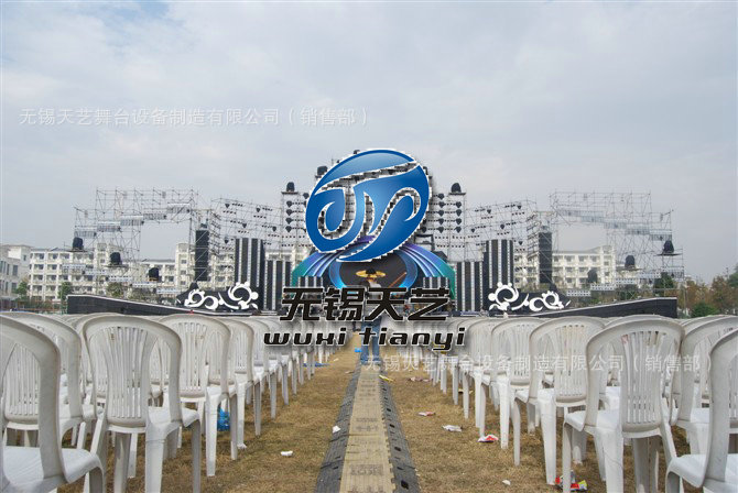 无锡天艺舞台设备制造有限公司是一家专业生产展览钢/铝桁架,钢/铝快装活动舞台,折叠舞台,玻璃舞台,展览篷房,铝合金灯光音响架,雷亚架,T台等广电传媒器材为一体的综合性的大型企业。公司位于国家级经济开发区 ,芙蓉工业园区A区蓉洋三路 32-1号,无锡东出口处8公里即可到公司,公司凭借着高质量的产品,良好的信誉,优质的服务,产品畅销全国近三十多个省、市、自治区以及远销南美、东南亚、欧美等国家。竭诚与国内外商家双赢合作,共同发展,共创辉煌。无锡天艺一直秉承“质量为首,服务为先,诚信为本”的经营理念,欢迎来公司参观洽谈。我们竭诚为您提供最优良的品质和最好的服务本公司始终坚持“以质量求生存为本”,本着“质量第一、信誉第一、竭诚服务、精益求精、不断创新”为宗旨,在国内市场奠定了良好的基础。为了更好的推行ISO质量管理体系,规范生产流程,严控把关产品质量,公司配备目前最先进的组装焊接与机械加工设备,流水线式的生产,不断提高生产技术和质量,确保以最优质的产品来满足客户的需求。