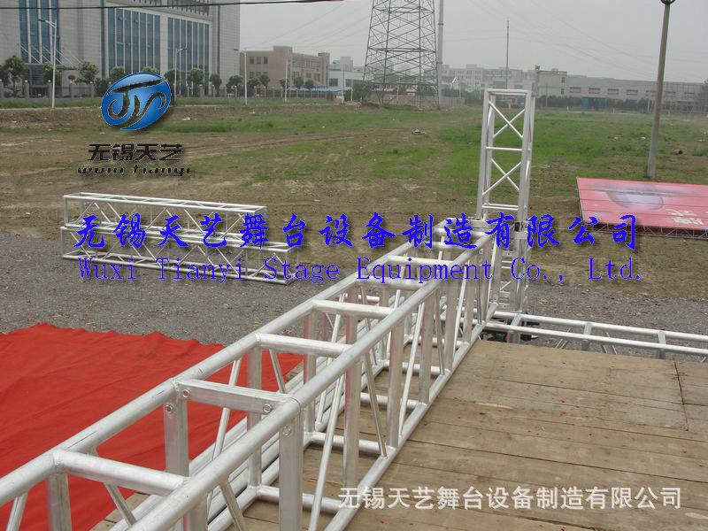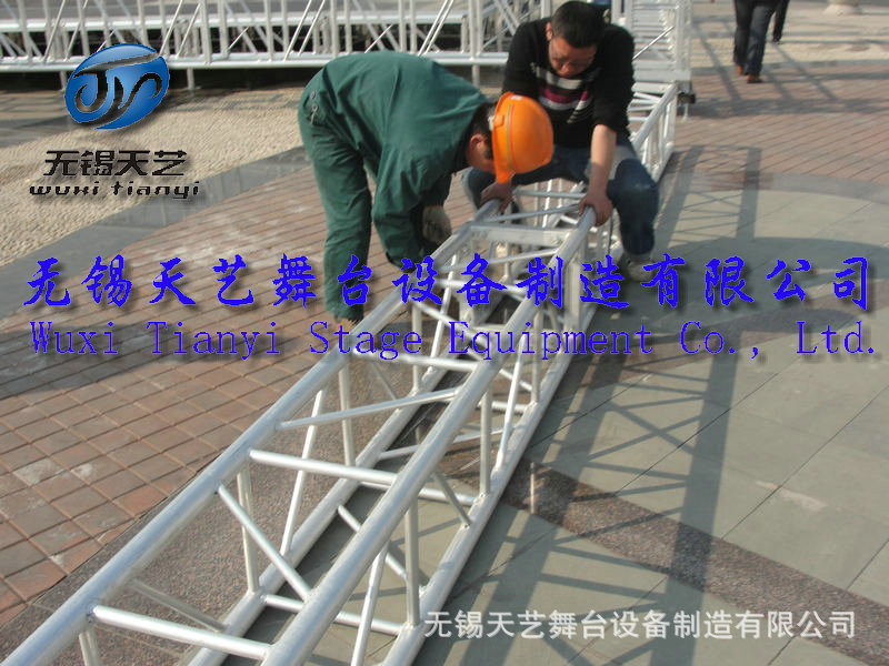 无锡天艺舞台设备制造有限公司是一家以专业生产展览钢制桁架,快装活动舞台,铝合金桁架,铝合金灯光架,雷亚架,A字架,铝合金舞台,玻璃舞台,折叠舞台,展览篷房T台为一体的综合性的大型生产企业。公司位于锡山经济开发区。公司拥有成熟的销售团队,竭诚为您提供最优质的服务,拥有最强大的技术和设备支持,全力为您打造质量最精的产品,公司秉承“质量为首,服务为先,诚信为本”的经营理念,立志在行业内创出辉煌!争创行业第一!欢迎来厂参观洽谈。我们竭诚为您提供最优良的品质和最好的服务。