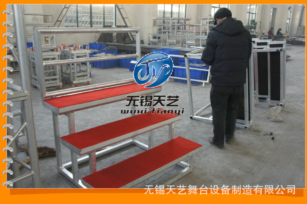 无锡天艺舞台设备制造有限公司是一家以专业生产展览钢制桁架,快装活动舞台,铝合金桁架,铝合金灯光架,雷亚架,A字架,铝合金舞台,玻璃舞台,折叠舞台,展览篷房T台为一体的综合性的大型生产企业。公司位于锡山经济开发区。公司拥有成熟的销售团队,竭诚为您提供最优质的服务,拥有最强大的技术和设备支持,全力为您打造质量最精的产品,公司秉承“质量为首,服务为先,诚信为本”的经营理念,立志在行业内创出辉煌!争创行业第一!欢迎来厂参观洽谈。我们竭诚为您提供最优良的品质和最好的服务。