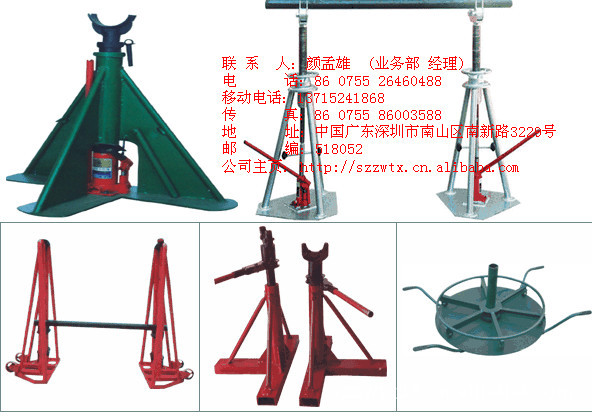 液压放线架规格分为5吨,8吨和10吨,技术参数如下:液压电缆放线架使用说明:1,电缆放线架轴杠穿过线盘中心孔,把液压放线架分别放在线盘两侧;2,调节内管高度使瓦架紧贴轴杠,然后用放线架侧面的横销穿入内管适合高度的孔内;3:拧紧千斤顶下面的油栓,用压力杆打压千斤顶;4,使线盘离地步放电缆。应用行业:■电信、联通电力工程放线,质量可靠,量大从优,欢迎广大同行来电咨询、洽谈合作。
