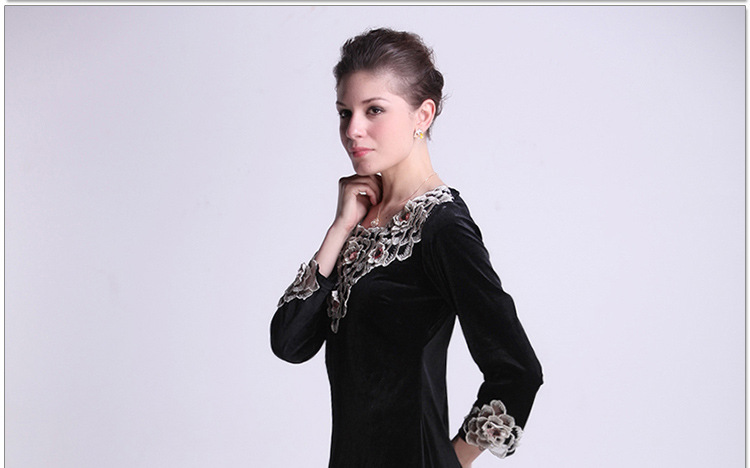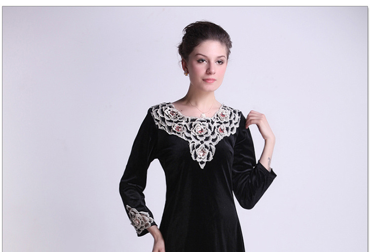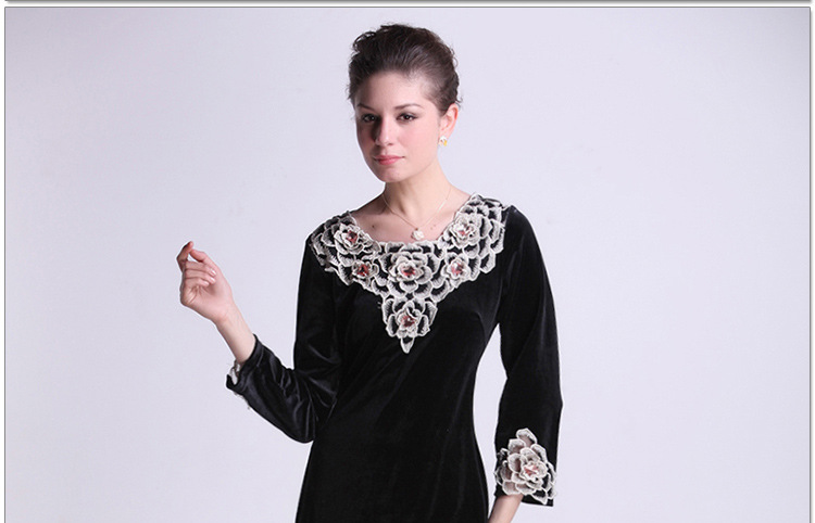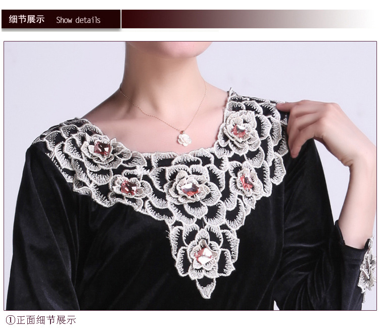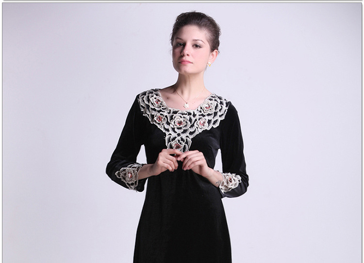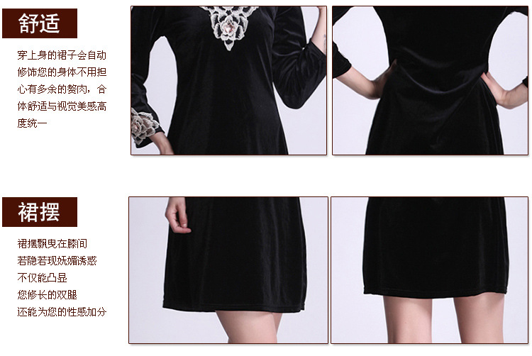 一件代发特大码女装 春装新款批发韩版刺绣花长袖钉珠连衣裙