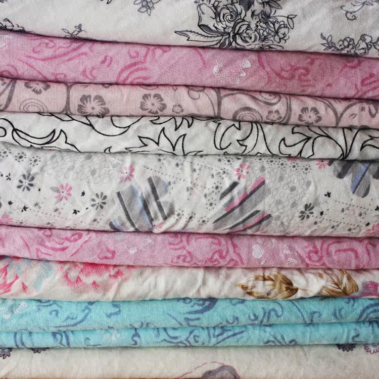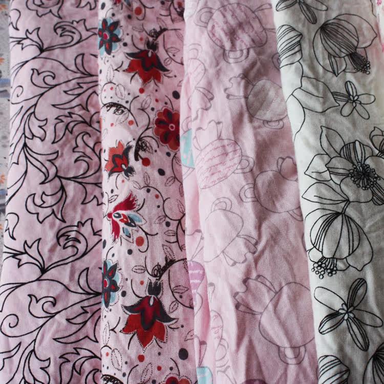 批发 外贸针织莱卡拉架弹力棉女装印花布头布块 手工DIY布料