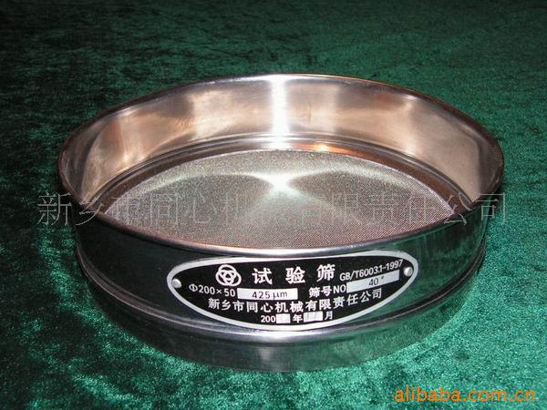 我公司专业生产出口用试验筛(标准筛)直径5英寸,8英寸筛面金属丝编织按ISO3310标准并经特加工,耐用,筛框为不锈钢材质,经拉伸并抛光,保证出口质量。编织网网孔2.36-0.025毫米(10目-500目),冲孔板试验筛(1-150MM)。同时生产拍击筛机,标准筛.试验筛特点,比常规网丝经粗,经特加工后经丝纬丝交叉点固定在一起,长期使用网孔不会变形,并耐磨。筛框坚固结实没有磁性,耐腐蚀。符合医药、食品、超硬材料(金刚石、金刚砂等)等行业的要求。