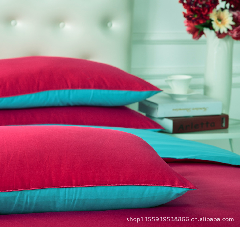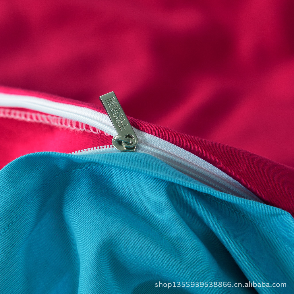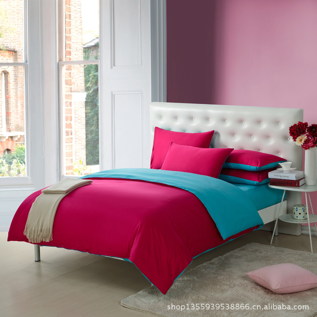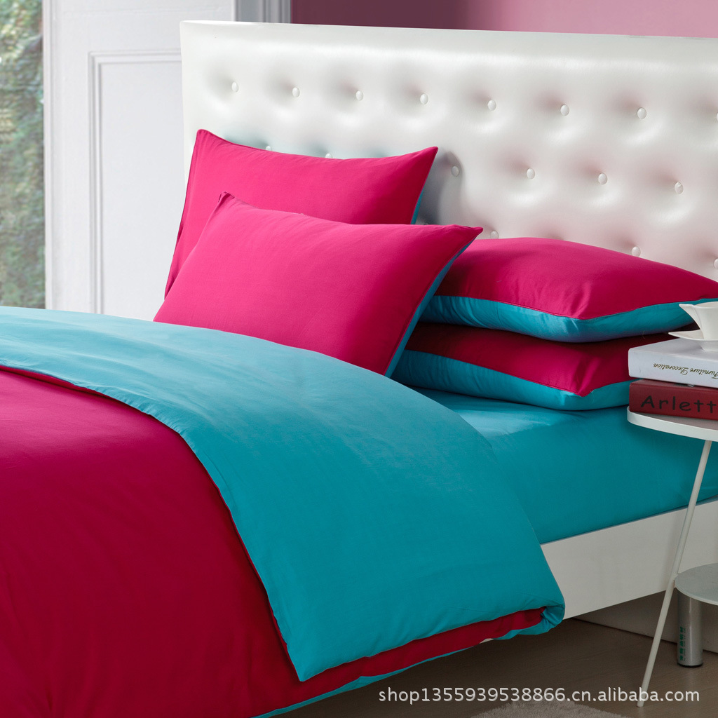 南通货源 玫红蓝 全棉素色双拼四件套件批发 跑量必备