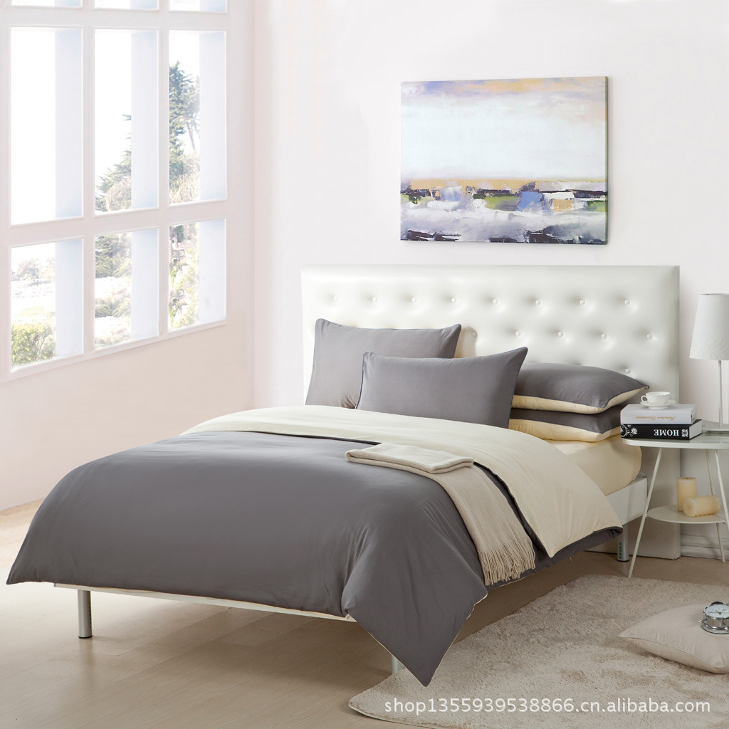 南通货源 浅金灰 全棉素色双拼四件套件批发 跑量必备