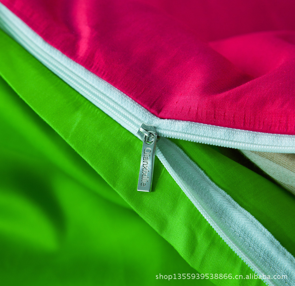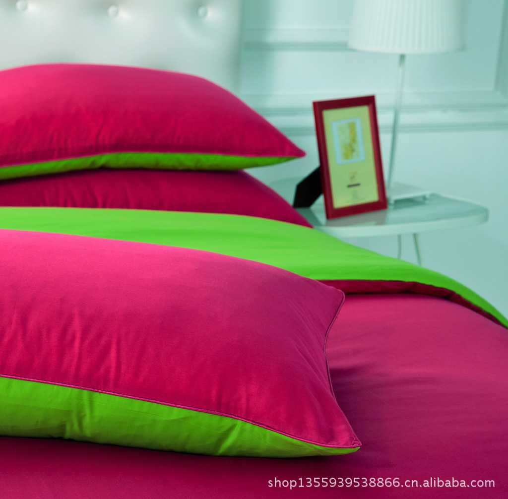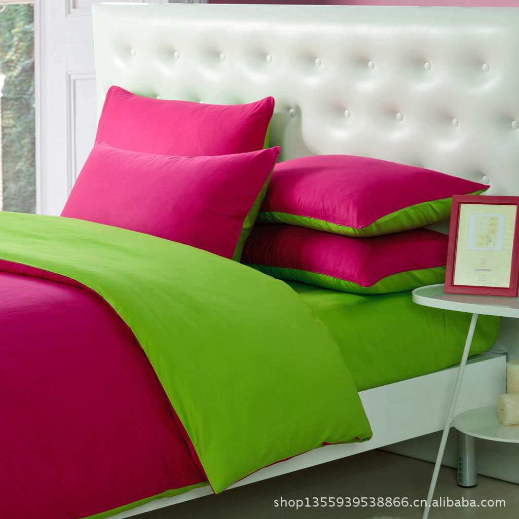 南通货源 桃红绿 全棉素色双拼四件套件批发 跑量必备