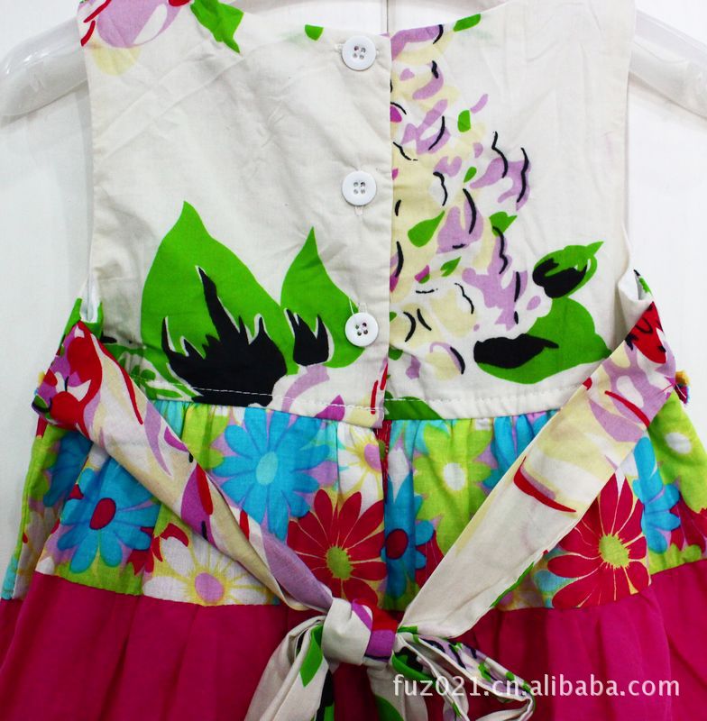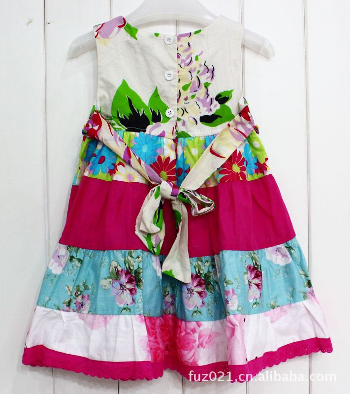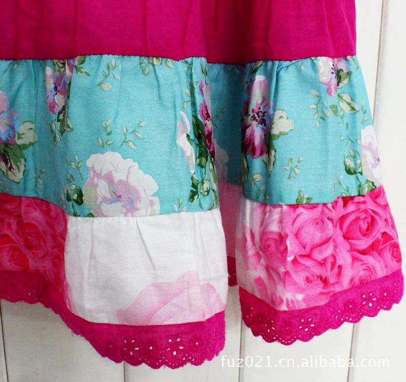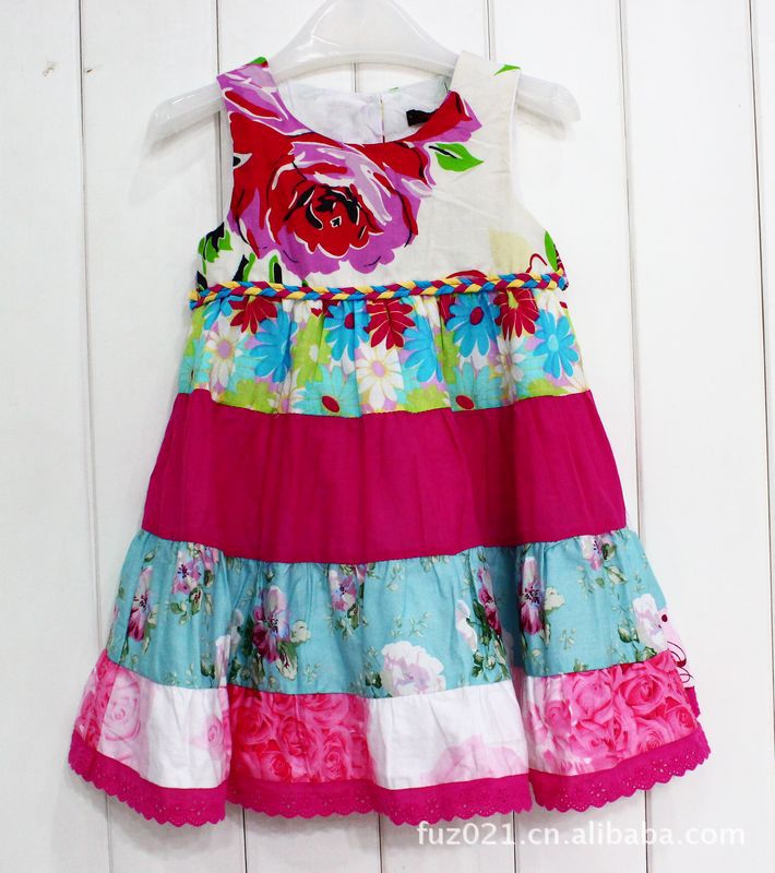 外贸童装批发玫红背心碎花裙摆气质 nannette外贸原单 女童连衣裙