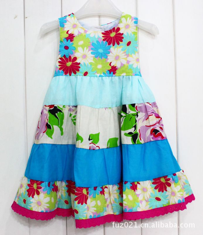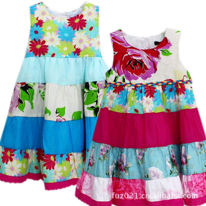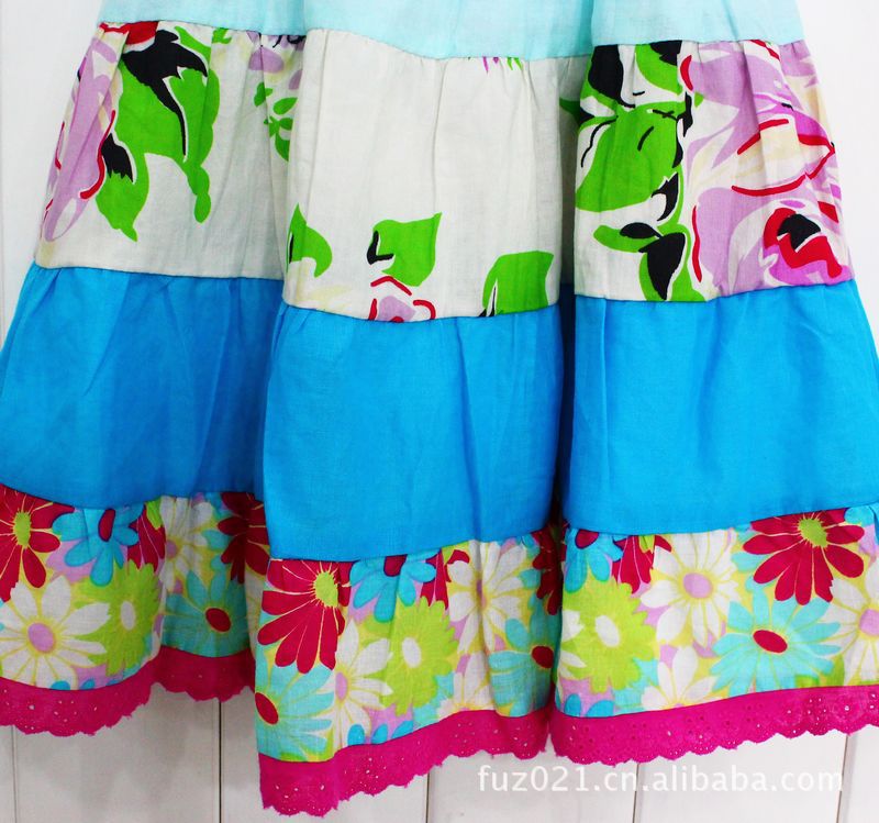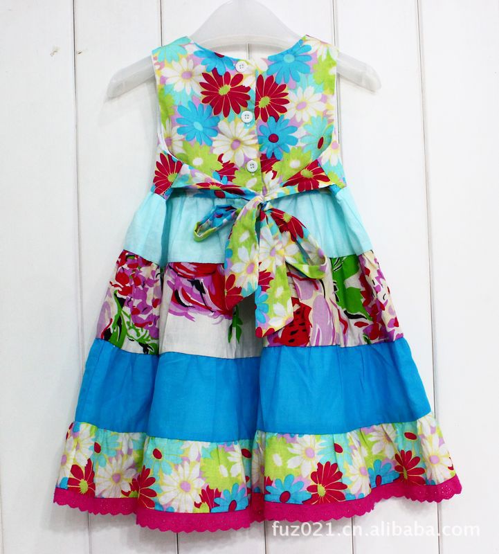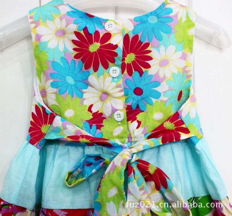 外贸儿童装 天蓝色背心碎花裙摆 nannette外贸原单 女童连衣裙