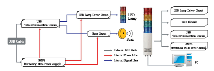 无需另外电源装置,可以使用USB接口连接到PC的USB LED 多层信号灯