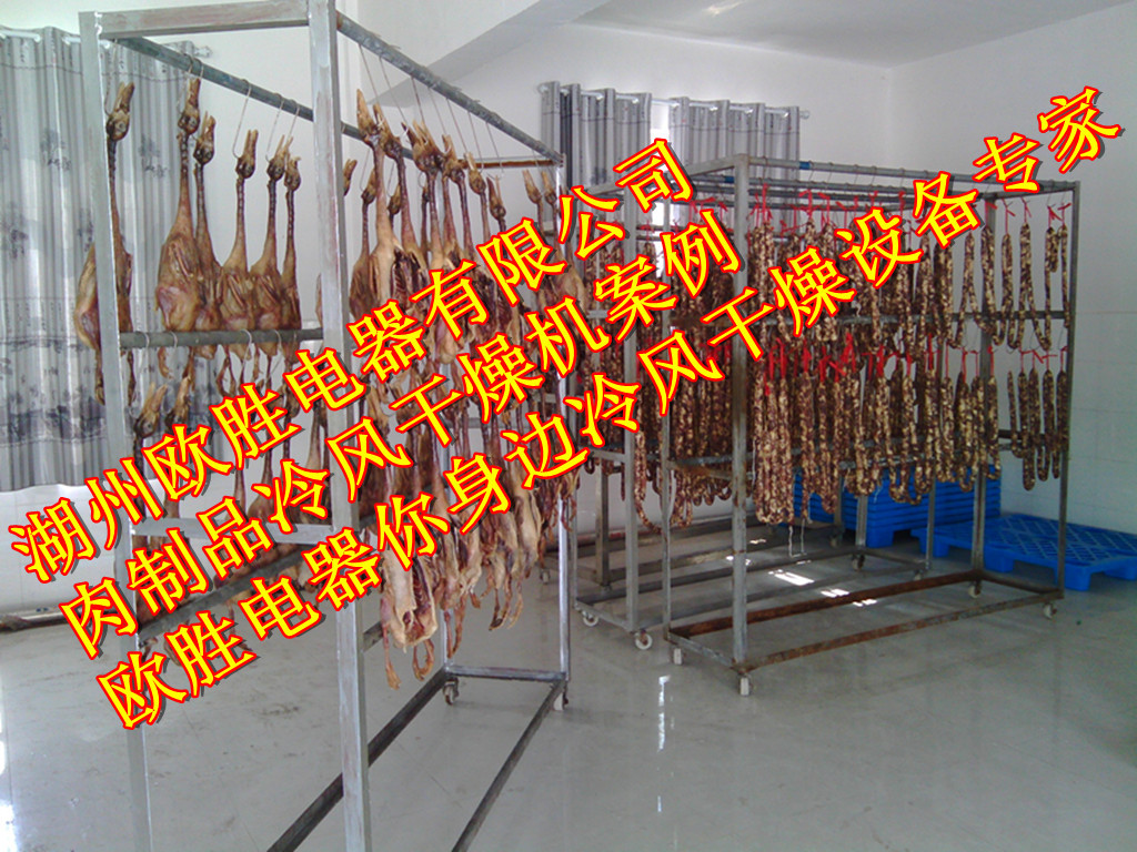 冷风干燥是在保温库房内模拟秋冬季低温、低湿、高风速的自然风干环境,对肉制品进行快速低温脱水干燥,与外界空气隔绝,卫生条件好,无需排湿装置,运行费用较热风烘干低,多余的热量通过水或风散至室外,能实现烘房内温差2℃的恒温干燥。
