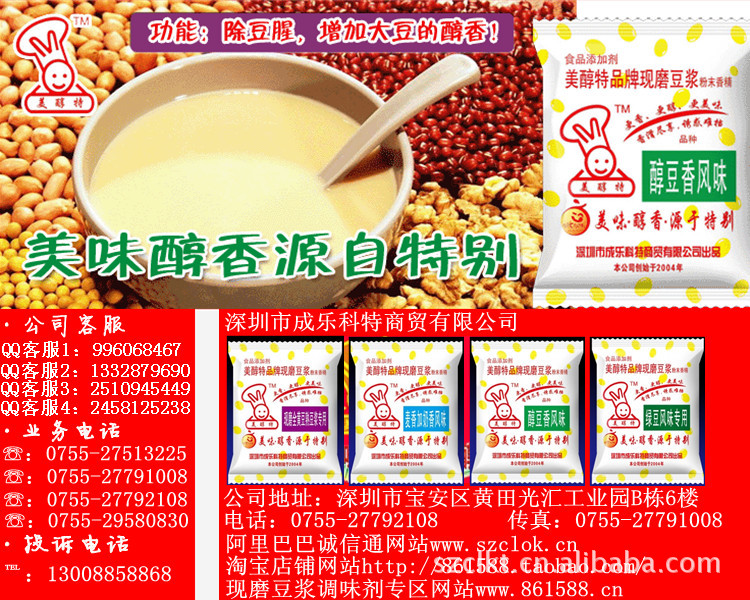 绿豆调味剂口感、风味目前在市场上是一个空白。加入绿豆豆浆调味剂生产绿豆豆浆与市场销售豆浆比较是一种全新的、独特的风味。与众不同才能在众多的同类产品中领先于人,欢迎商祺,独家生产销售。