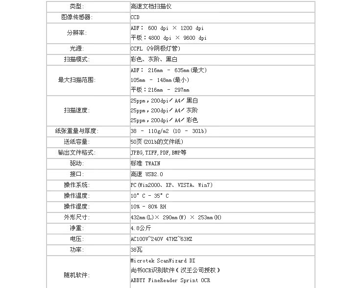 中晶扫描仪 Microtek FileScan 2500 fs2500 高速文档扫描仪