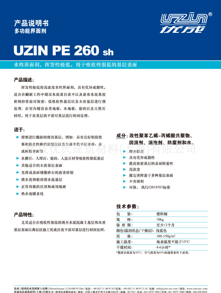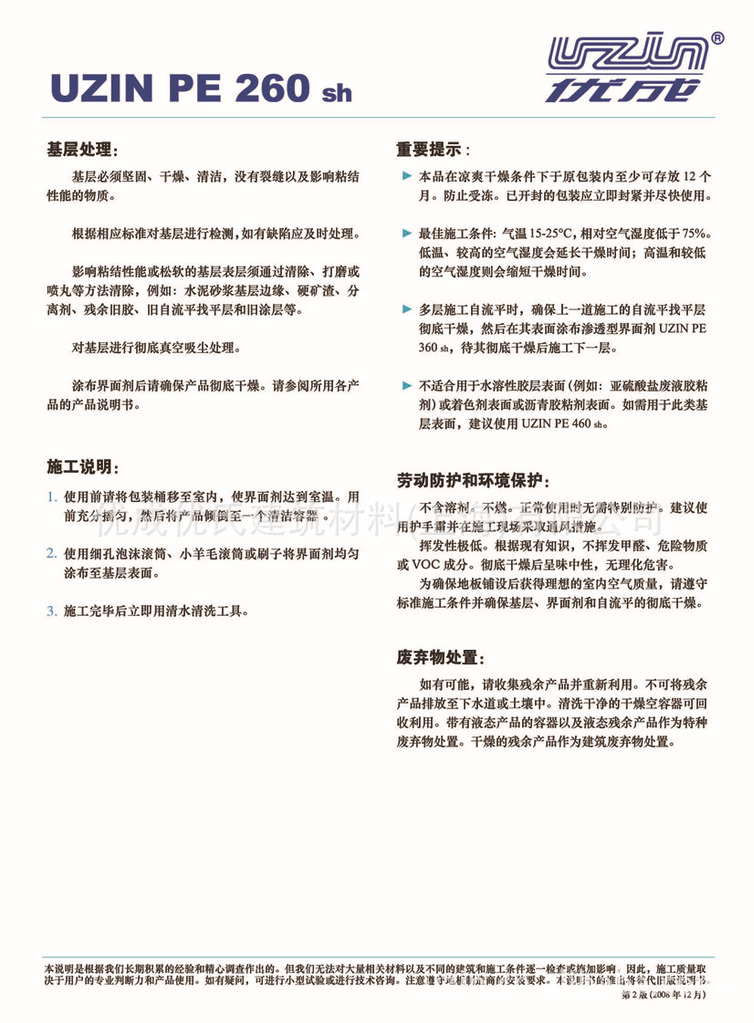 尤其适合在吸收性很低的现有水泥混凝土基层和木质基层表面以薄层法施工优成自流平前对基层进行封闭处理。