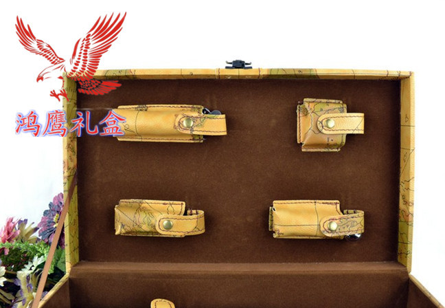 鸿鹰浅黄色地图双支4件套皮盒 |