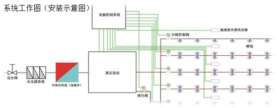 2.电脑智能化控制(集成运行):湿度、喷雾压力、喷雾方式、排污方式可任意设定,实现了真正的智能化控制;变频恒压系统;水泵缺水自动保护系统;电机过载保护系统;主机、管路自动排污系统;故障自动停机报警显示。操作方便,维护工作量极少,系统运行稳定可靠,可实现无人化管理。