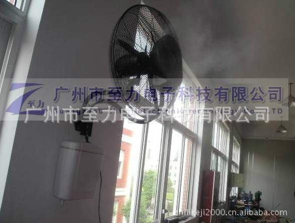 离心式喷雾风扇水在旋转碟和雾粒喷散装置作用下,利用离心力产生超微小的雾滴,因此极大地提高了蒸发表面积;雾滴通过强力风扇吹出的气流,极大地提高了液体表面风速,加快气体分子的扩散,因此水的蒸发量大大提高,水在蒸发过程中吸收热量,降低温度,同时可以提高空气相对湿度,减少粉尘,净化空气;这种喷雾风扇是利用离心力产生雾滴,故称做离心式喷雾风扇。