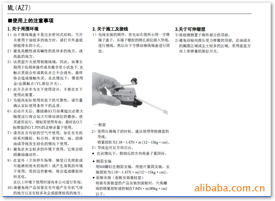 供应松下ML(AZ7)系列小巧型横式限位开关AZ7310