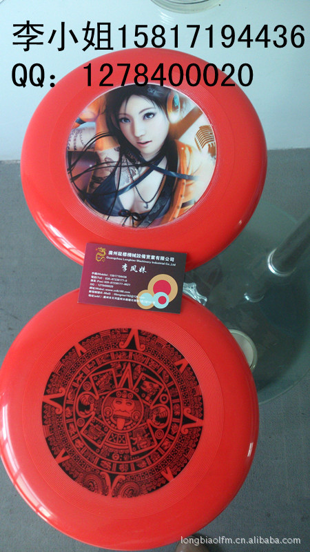 飞盘彩色印刷机为您解决以下印刷难题: (1)一件起印,无须制版、无须出菲林,费用低廉,兼顾小批量的产品印刷。 (2)不挑材质,任意材质印刷,兼容性好。 (3)一次印刷多色,无须套色,完美的颜色过渡,惊人的印刷效果。 (4)立体产品印刷,该万能打印机可打印厚度为15厘米的任何产品。 (5)精致,多色,异型的产品的印刷首选。 产品特点:1、操作简单,方便。打印时省去许多工序,如出菲林、准确套色、制版等复杂的操作步骤,无需依赖人员看管。2、可以打印任何材料的物体,如,水晶饰品、玻璃深加工摆饰品、木板、陶瓷、书画艺术、布匹、服装、塑胶制品、金属五金制品、皮革制品、硅胶、PVC等。3、可以加工不规则形状的物体,如棱柱体或椭圆形物体或斜面体,可以加工凹凸面厚度差为5毫米的物体。4、打印机喷头是日本爱普生公司原装进口的。。5、打印机喷头具有自动清洗的功能和根据物体的实际高度可调节打印机的高度,保证所打印的物体能够完全打印。6、可以随意设定批量化生产根据生产需要,省却重复操作电脑的步骤。7、打印速度快,投入成本低。8、采用大容量墨水盒,避免了因频繁更换墨水盒而影响生产效率,同时使印刷成本降低。9、超低的印制成本,比起现有的热转印工艺可节省80%以上的成本。10、可以进行个性化打印,非常适合T恤,枕头、购物包、围裙、手套、棉袜、手帕等个性化的彩色印刷服务。11、外观设计;整体,简捷,追随主流。