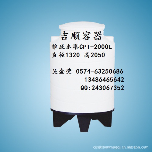 2吨锥底水塔采用塑料原料制作,耐酸碱,被广泛应用于水处理,医药食品等行业的储存