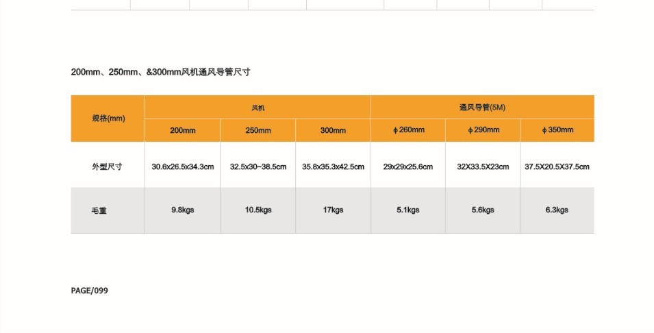 200mm、250mm&300mm风机通风导管尺寸