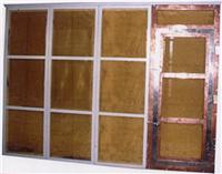 铜丝筛网分 黄铜类 紫铜类 磷铜类 黄铜筛网:别名屏蔽网 材料:黄铜丝 特性:无磁、耐磨、延展性好。 规格:6目/英寸——160目/英寸幅宽:0.6——1.5m 编织:平纹、斜纹。 用途:筛选各种颗粒、粉末、瓷土、玻璃、瓷器印花、过滤液体、气体。 磷铜筛网:别名锡青铜网 材料:磷铜丝(锡青铜丝) 特性:无磁、耐磨、延展性好。 规格:6目/英寸——350目/英寸幅宽:0.6——1.5m 编织:平纹、斜纹。 用途:筛选各种颗粒、粉末、瓷土、玻璃、瓷器印花、过滤液体、气体。 紫铜网:别名展敝网 材料:紫铜丝 特性:无磁、耐磨、隔音性好、过滤电子束 规格:4目/英寸——60目。英寸 幅宽:0.76——1.2m 编织:平纹、斜纹。 用途:筛选各种颗粒、粉末、瓷土、玻璃、墙体隔音、电子显示屏。 铜丝网: 材料:45号钢盘条拔成23#以上钢丝。 性能:硬度大、拉力大、坚固耐磨。 规格:3-38目/英寸,幅宽:0.914m ——0.1m 编织:平纹 用途:矿山、冶金、建筑、药材等行业的筛选